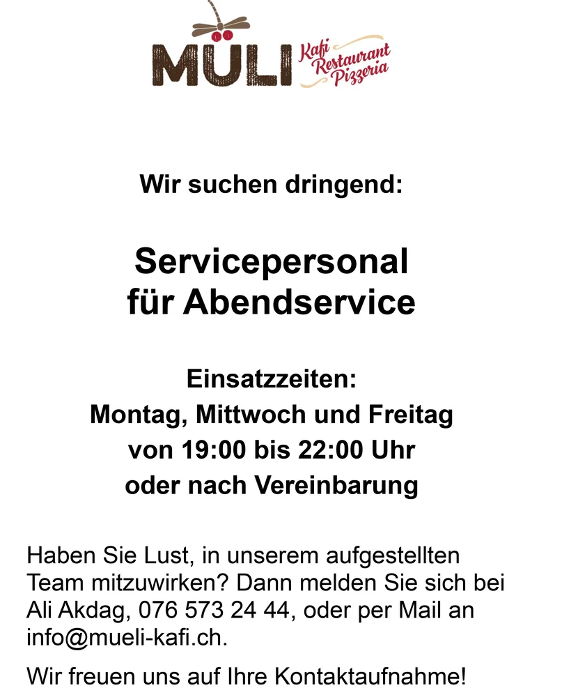 Wir suchen Servicepersonal für Abendservice